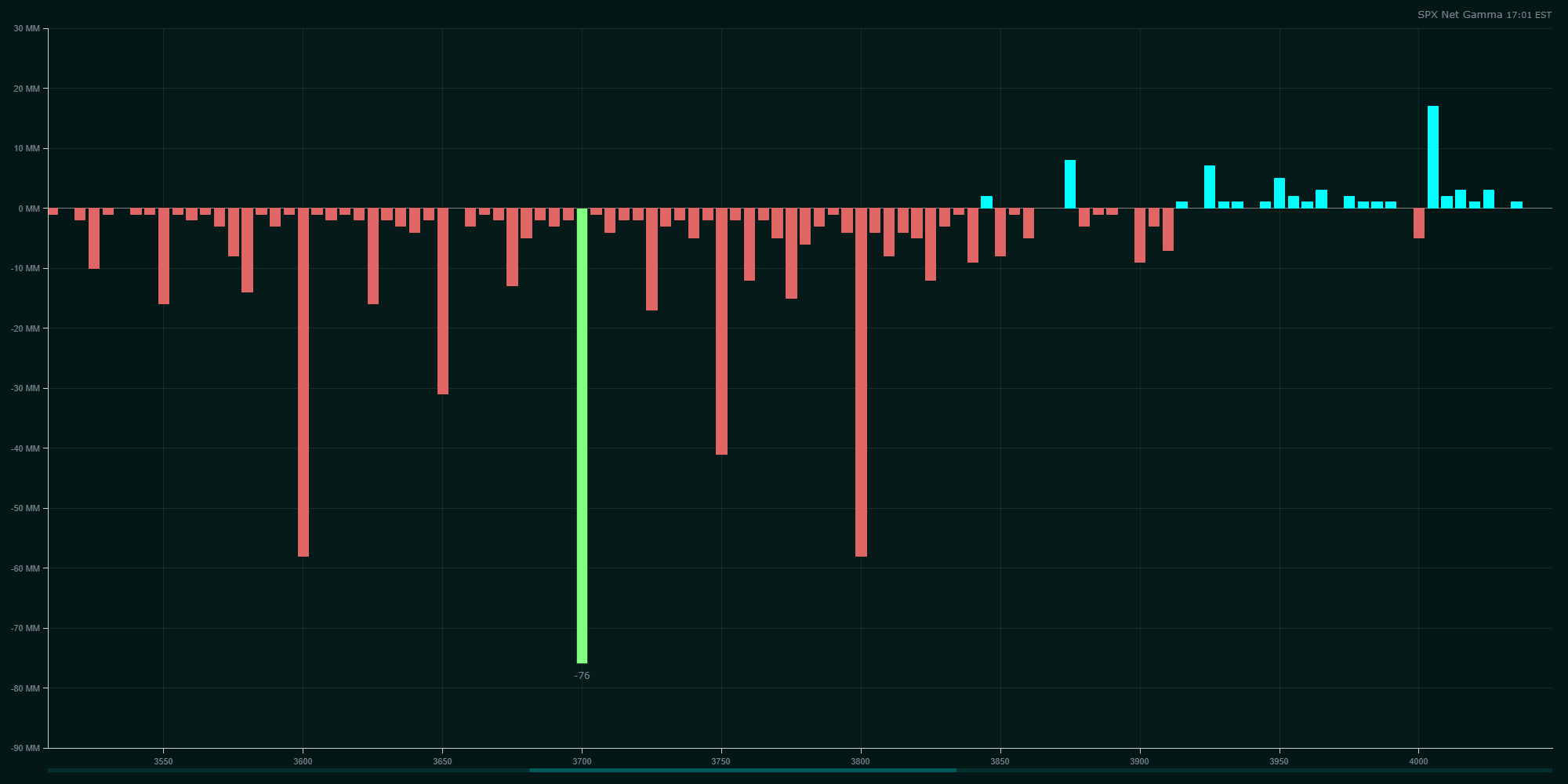 Key levels to watch tomorrow are 3800 and 3700 (the main gamma strike).