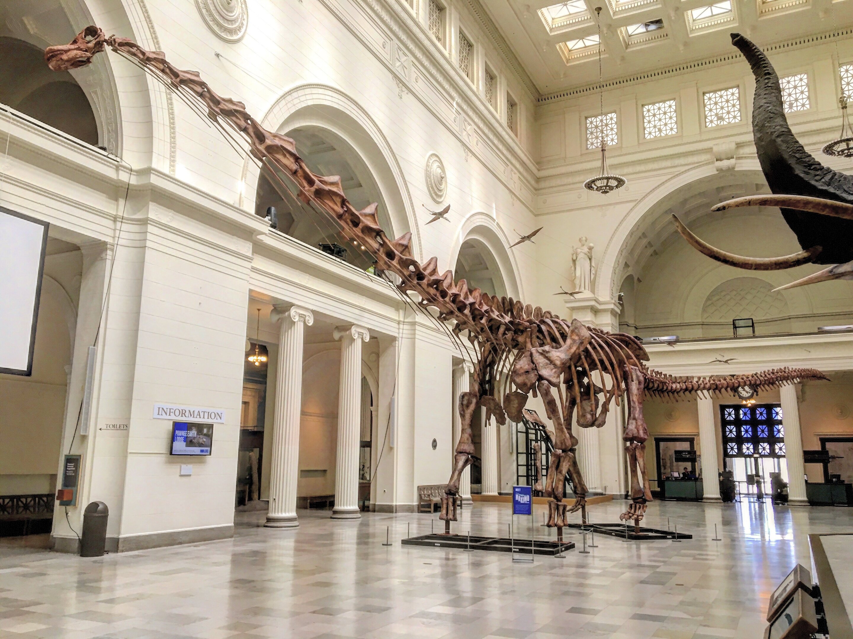 Image of the Titanosaur, Patagotitan, skeleton cast on display at the Field Museum of Natural History, Chicago, IL. Credit: Zissoudisctrucker…