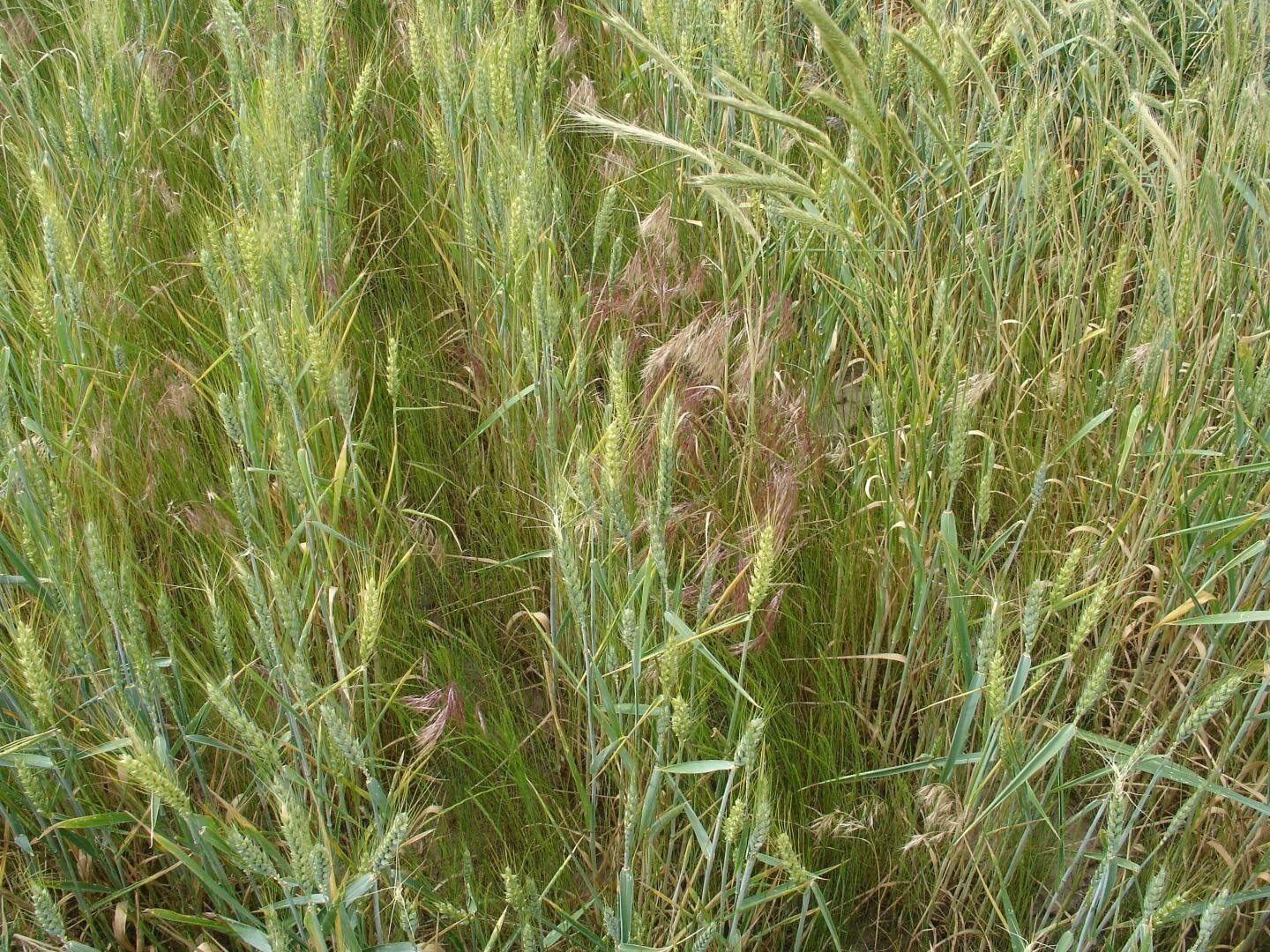 Collection of feral rye (Secale cereale), rattail fescue (Vulpia myuros), and downy brome (Bromus tectorum) in a winter wheat field…